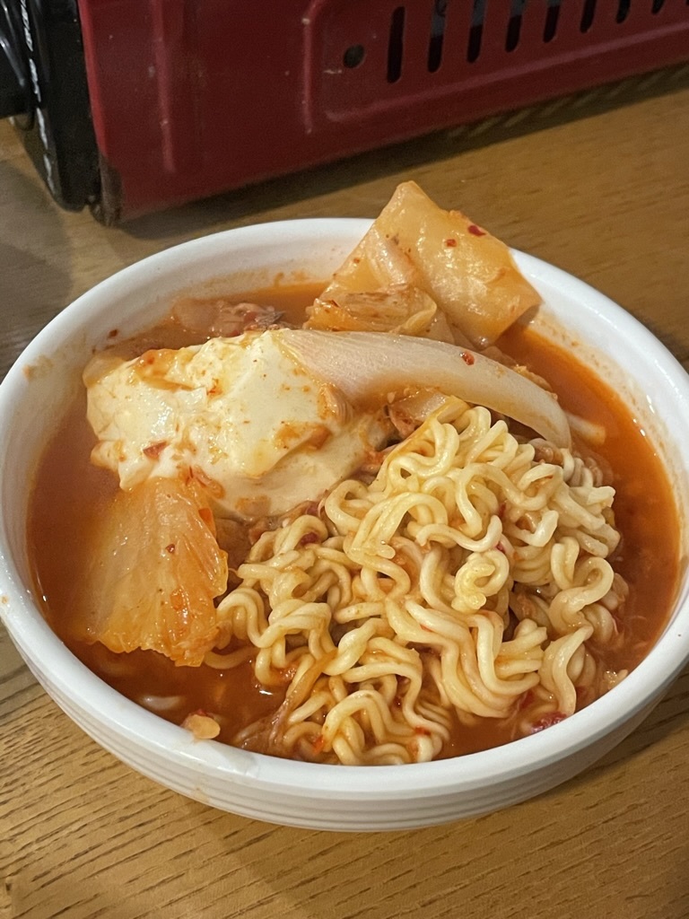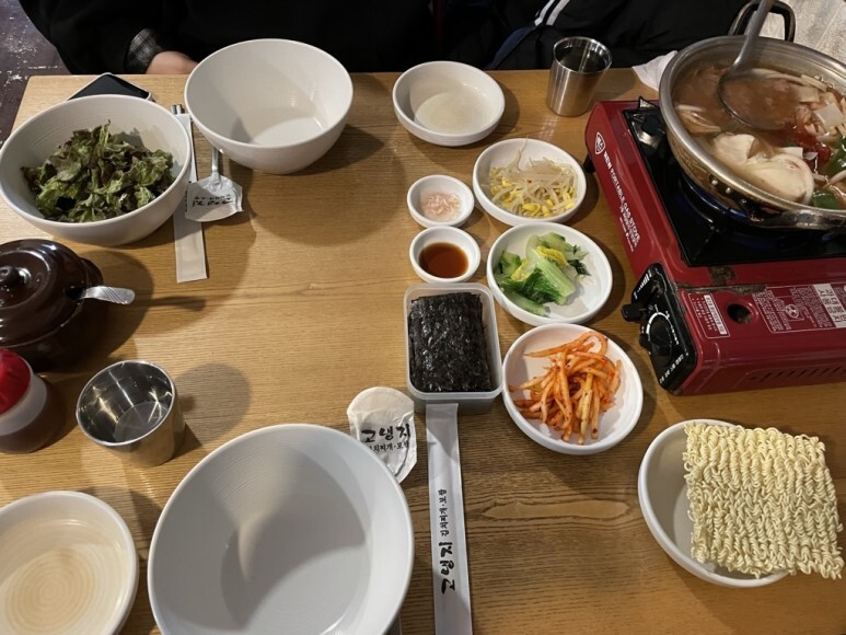 김치찌개에 들어갈 토핑을 두가지 고를 수 있엇는데