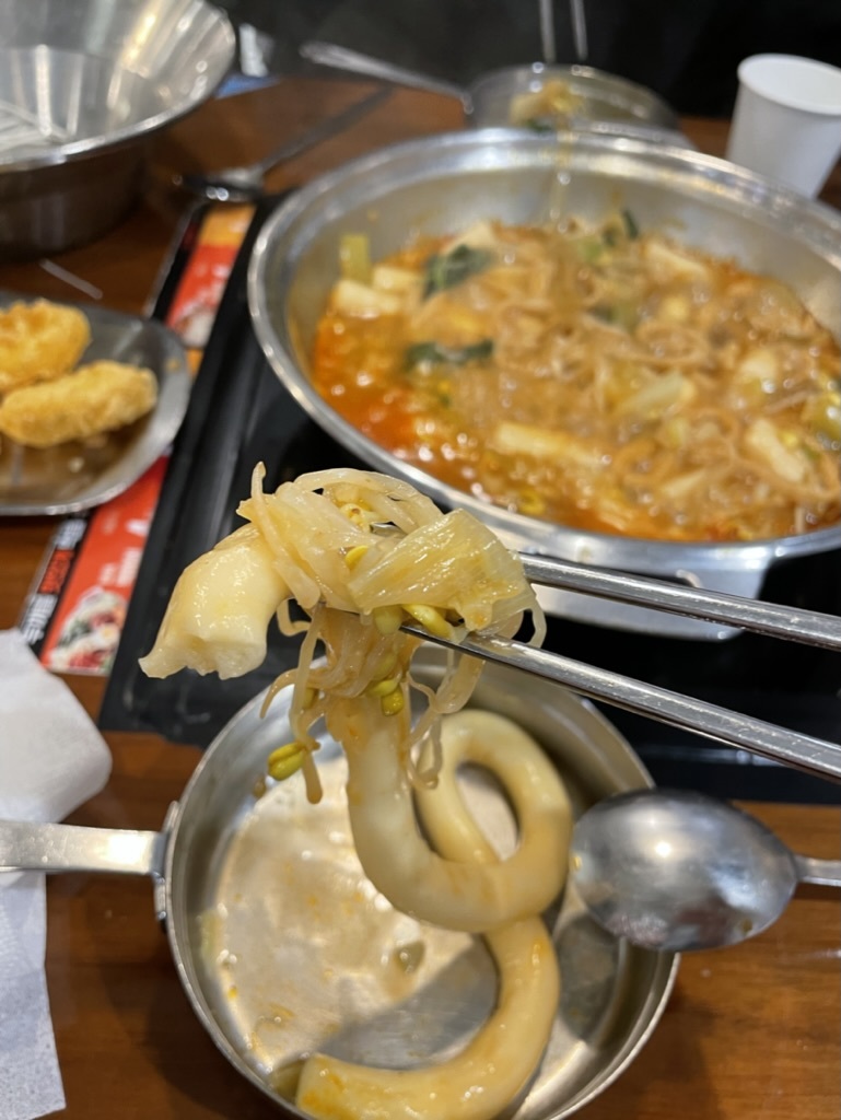 야채로 육수를 낸 다음엔 떡과 당면을 투하했다.